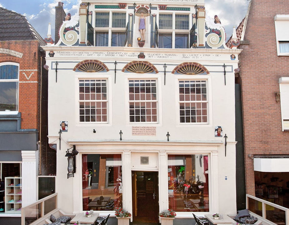 Gezellig Stadscafé in één van de mooist gedecoreerde gebouwen van de Coevorden. De uitbundig versierde natuurstenen gevel siert sinds 1631 het pand. Leuke locatie voor een borrel of een heerlijk diner.